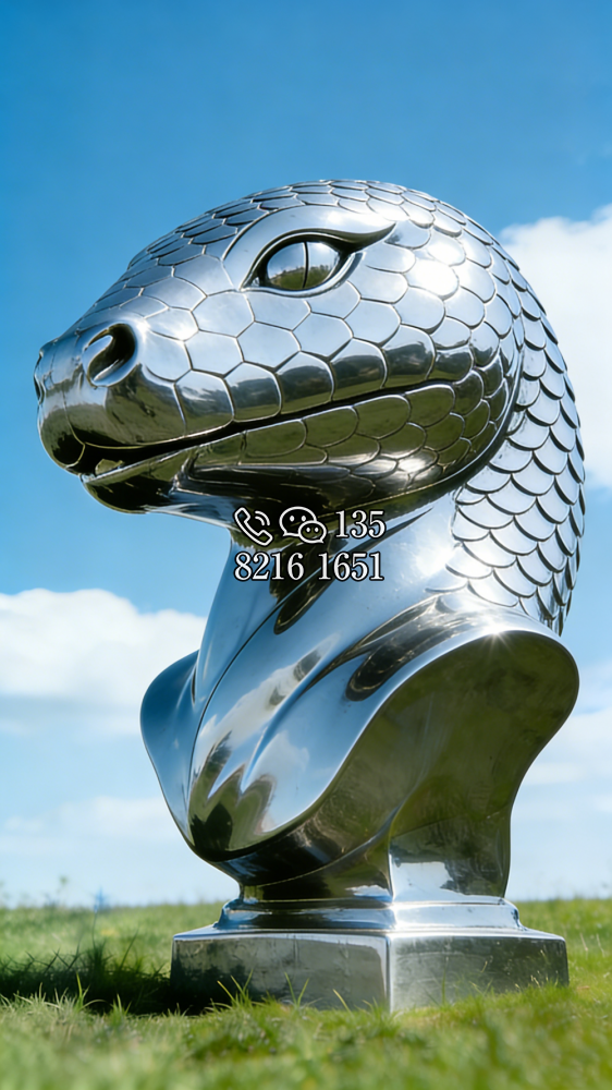 不锈钢 镜面 十二生肖 动物 蛇头 胸像