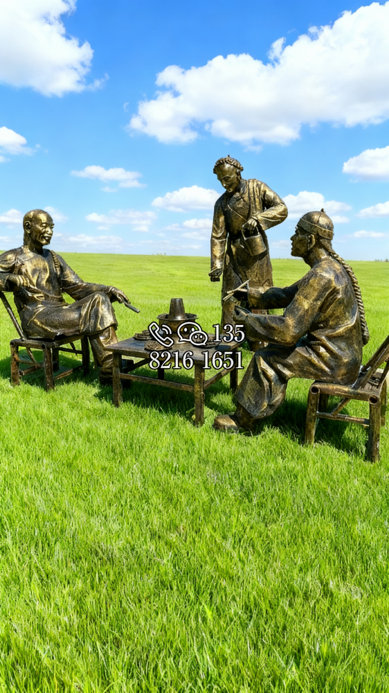 玻璃钢仿铜吃火锅的人物雕塑 (2)