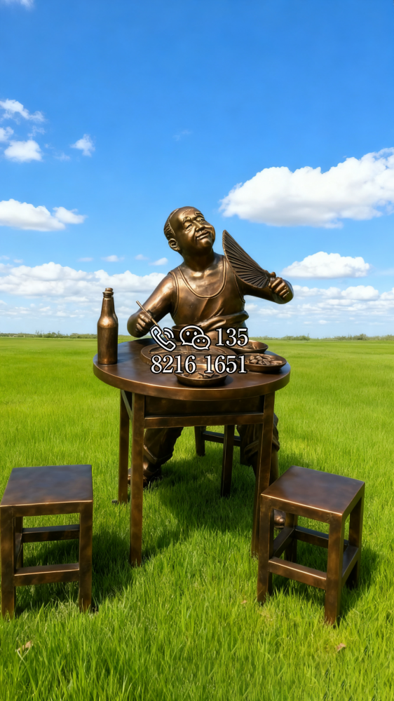 玻璃钢仿铜吃火锅的人物雕塑 (3)