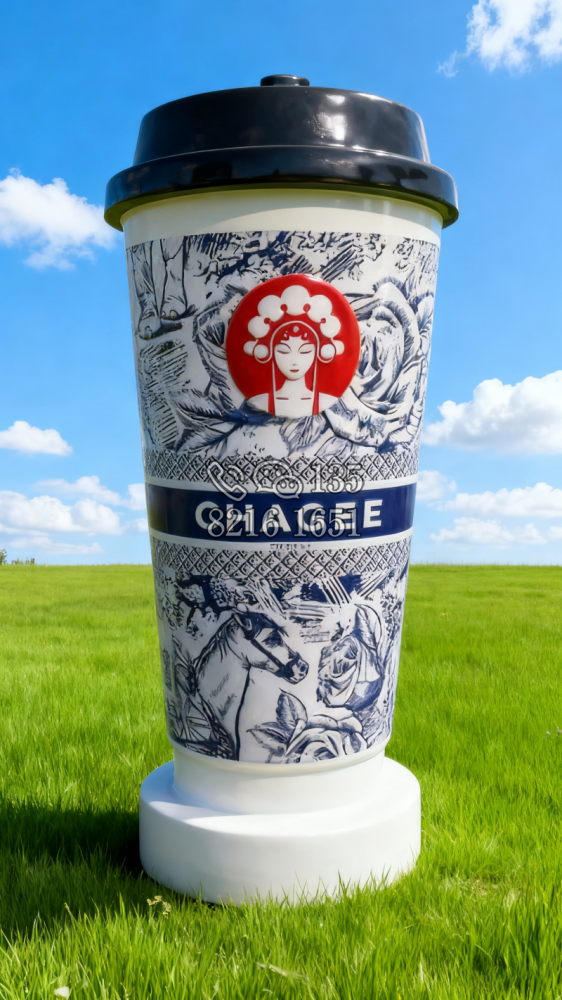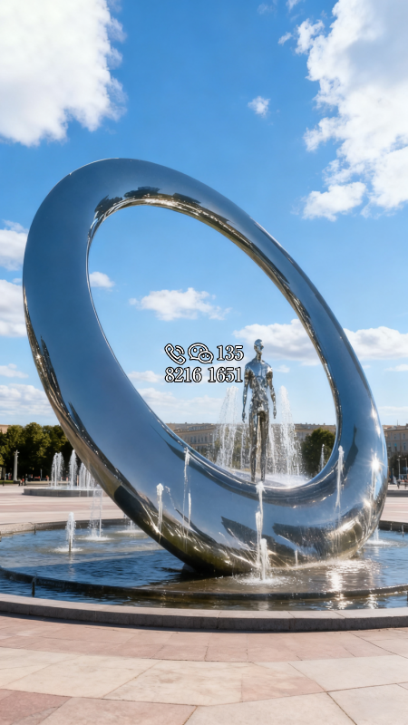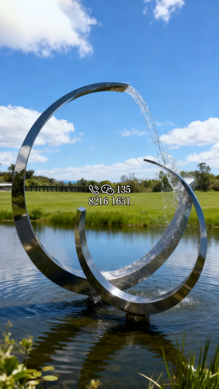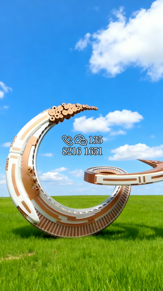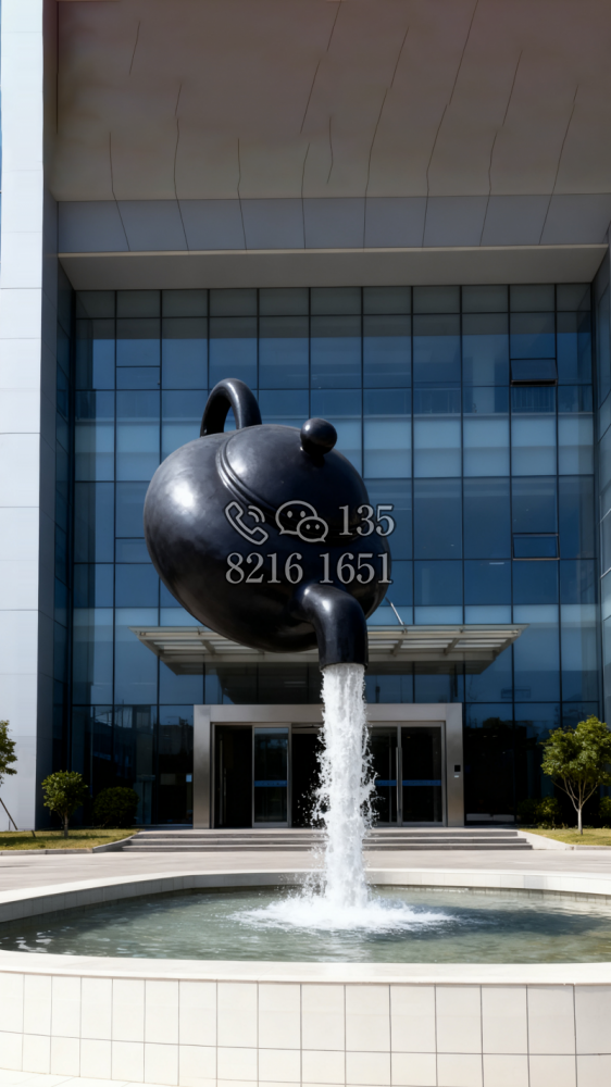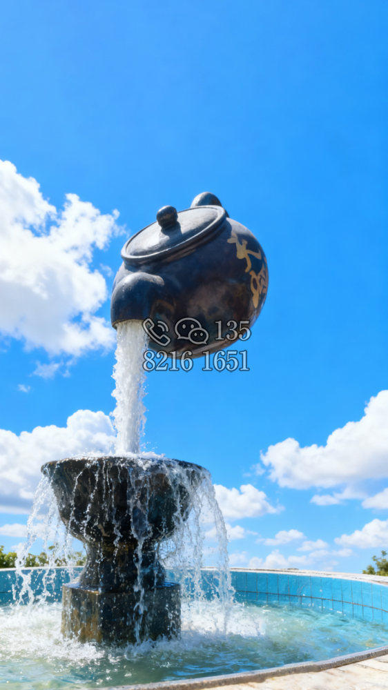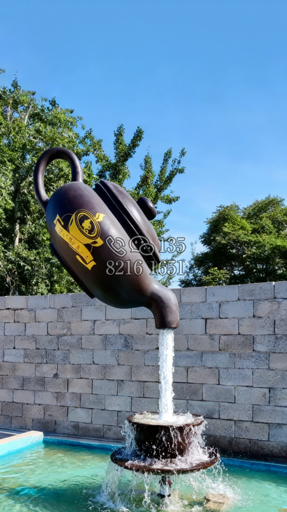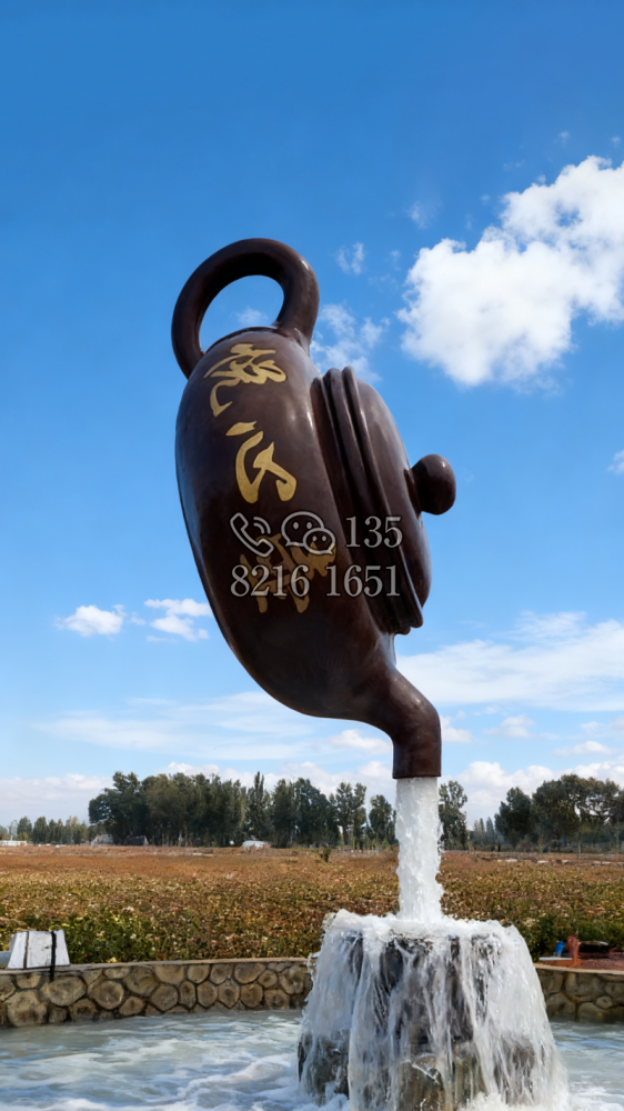 玻璃钢材质,仿陶罐,大型流水景观雕塑。总高6米,顶部陶罐长1.26米,中间主体陶罐高4.1米,去除底部一圈陶罐和外部飘带造型,内置水管水泵,水被抽入顶部陶罐,再从陶罐口留出,形成水流源源不断永远流不完的错觉。