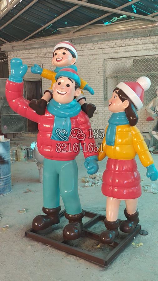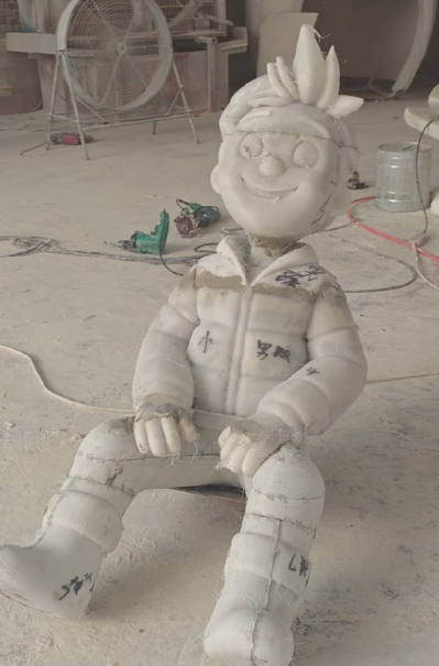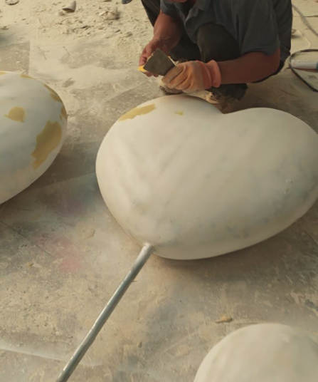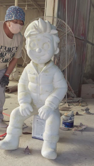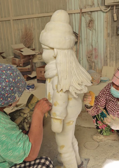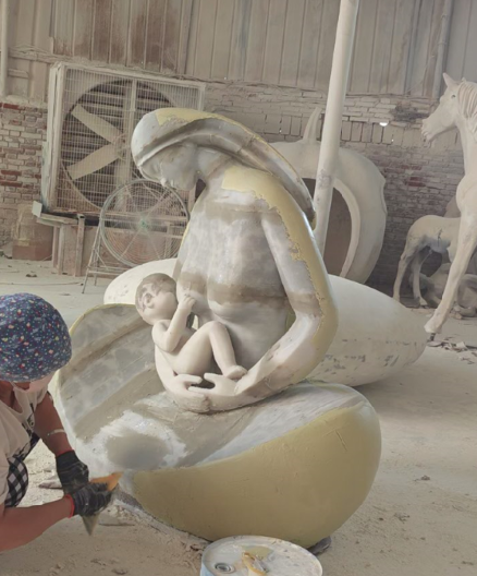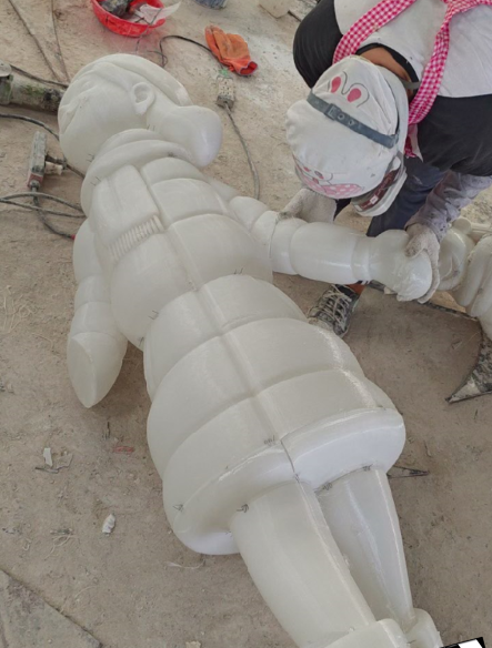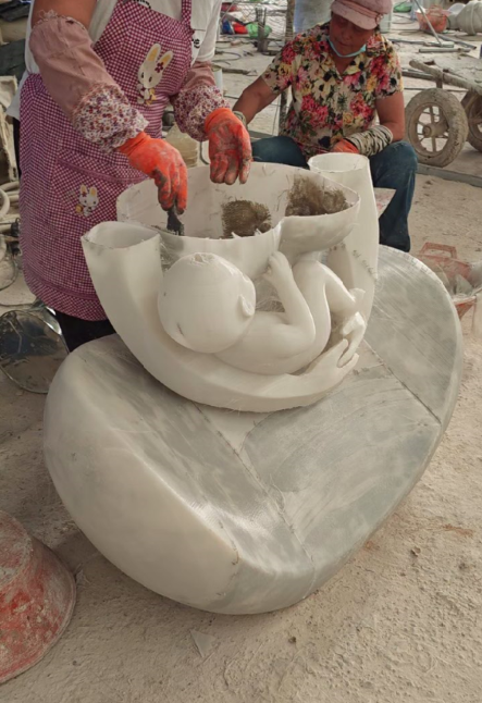 人物部分全是3d打印成型,内部贴布并部署龙骨;大爱心为泡沫雕刻成型,外部刷胶贴布;小爱心采用石膏模具人工翻模成型。